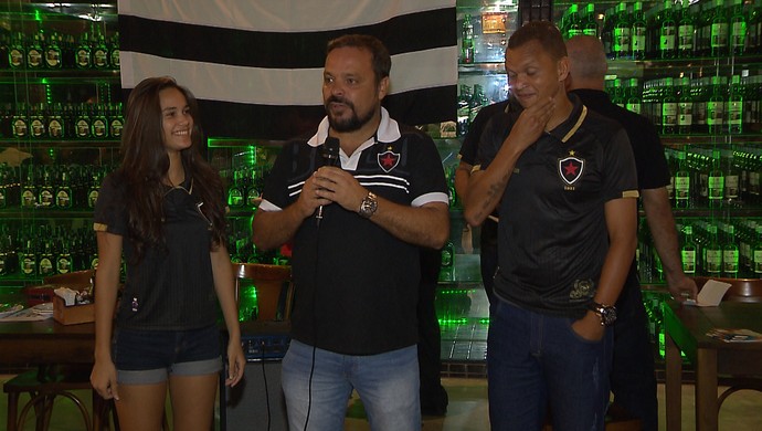 Hanne Bakke, Giovani Martineli e Warley no lançamento das comemorações de 85 anos do Botafogo-PB (Foto: Reprodução / TV Cabo Branco)