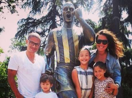Família reunida em frente à estátua de Alex na Turquia: férias durante mês da Copa do Mundo