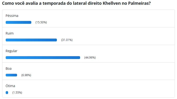 A Gazeta Esportiva realizou uma enquete para avaliar a atuação de Khellven, na qual a maioria dos torcedores o classificou como tendo feito uma temporada regular, acumulando 44,96% dos votos. Em contrapartida, 31% dos participantes o consideraram "bom", enquanto 15,5% o avaliaram como "péssima", 6,98% como "boa" e apenas 1,55% o considerou "ótima".