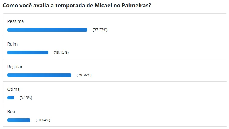 A temporada de Micael no Palmeiras foi marcada por uma série de insatisfações, tanto por parte da torcida como em relação ao próprio desempenho do jogador. O zagueiro, que foi contratado do Houston Dynamo, não conseguiu atender às expectativas que cercavam sua chegada ao clube. Uma enquete realizada pela Gazeta Esportiva revelou a desilusão da torcida, com 37,23% dos votantes classificando o ano de Micael como "péssimo". Além disso, 29,79% consideraram sua atuação "regular" e 19,15% a rotularam como "ruim". Apenas 10,64% acreditaram que sua performance foi "ótima", evidenciando a desaprovação generalizada.