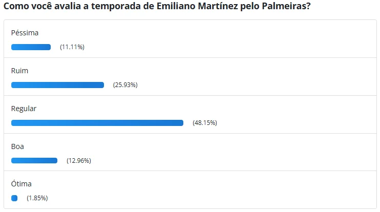 Emiliano Martínez, meio-campista uruguaio, teve sua primeira temporada com a camisa do Palmeiras em 2025. O jogador, que se transferiu do Midtjylland, da Dinamarca, em janeiro, foi avaliado pela torcida como tendo uma performance "regular", conforme uma enquete realizada pela Gazeta Esportiva. Com diversas convocações para a seleção do Uruguai, Martínez teve espaço sob o comando de Abel Ferreira, embora suas oscilações o tenham feito terminar o ano na condição de reserva.