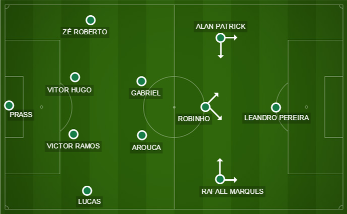 Sem Dudu, Alan Patrick forma trio de armadores com Robinho e Rafael Marques (Foto: GloboEsporte.com)