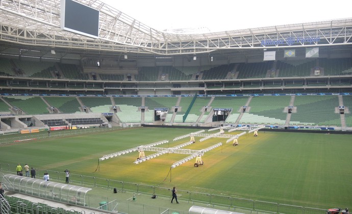 Gramado da Arena Palmeiras recebe tratamento com luzes (Foto: Felipe Zito)