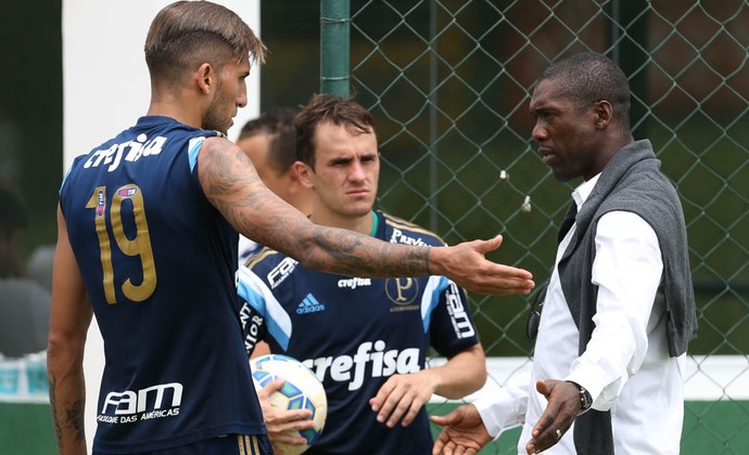 Seedorf conversa com Rafael Marques e Lucas após o treino (Foto: Cesar Greco/Ag Palmeiras/Divulgação)