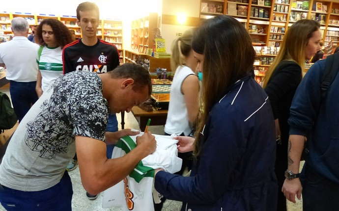 Torcedor do rival Atlético-PR, Marcelo Muniz esperou quatro horas na fila para garantir um autógrafo do ex-meia.