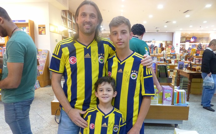 Haiko Abrahams, ao lado da filha Handressa e da esposa Helaine garantem o exemplar do ídolo do Fenerbahçe (Foto: Monique Silva)