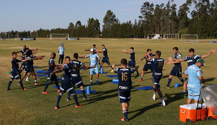 Grupo palmeirense durante treino no Uruguai (Foto: Cesar Greco/Ag. Palmeiras/Divulgação)