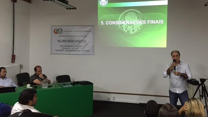 Marcelo Oliveira conversou com profissionais da base do Verdão nesta segunda-feira (Foto: Divulgação)