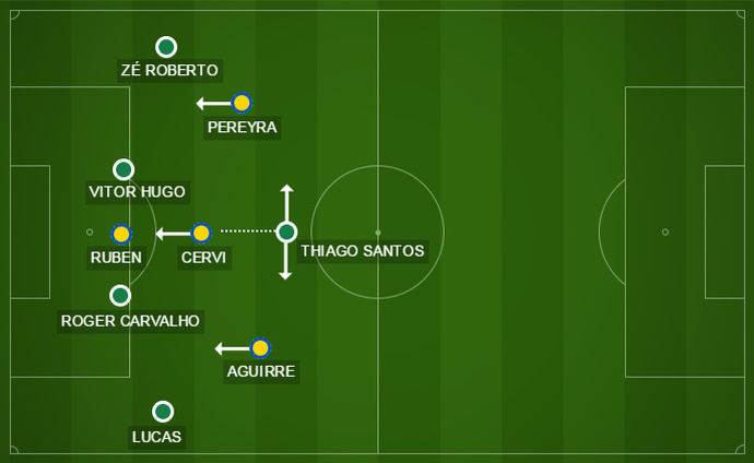 Tocar mais a bola será essencial para o Palmeiras. Isso passa diretamente pela transição entre defesa e ataque. Em vez das ligações diretas, dos tão criticados “chutões”, quando o Central apertar a defesa, é necessário que Thiago Santos busque a bola e se aproxime de Jean e Robinho. Mais movimentação, menos distância entre os setores.