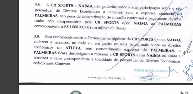 A operação é alvo de uma ação judicial do Palmeiras. Se vencer, o clube passa a deter 52,5% sobre o atacante, e pode lucrar muito mais em uma venda para a Europa. No caso da proposta atual do Manchester City (32,5 milhões de euros – R$ 117 milhões), o faturamento do alviverde subiria de R$ 35,1 milhões para R$ 61,4 milhões; o lucro praticamente dobraria.