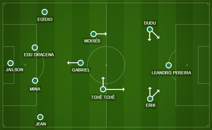 Com Rafael Marques (inicialmente aberto pela esquerda, depois centroavante) e Róger Guedes nas vagas de Dudu e Leandro Pereira, respectivamente, o Palmeiras administrou a vantagem e atingiu seu objetivo.