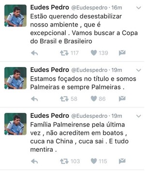 Conhecido por interagir com torcedores nas redes sociais, o auxiliar técnico do Palmeiras Eudes Pedro foi ao Twitter nesta sexta-feira para negar que Cuca voltará a trabalhar na China na próxima temporada.