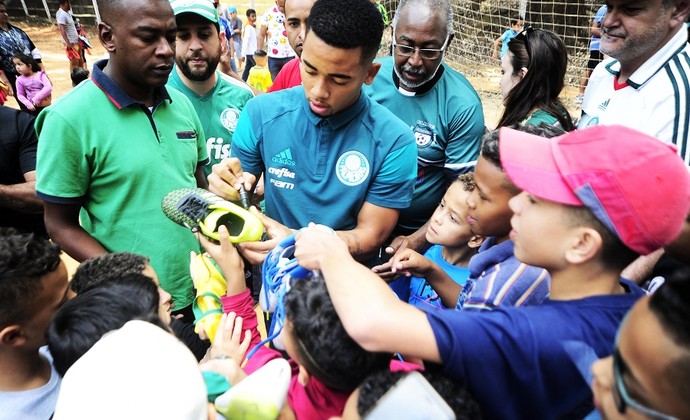 Durante o evento, Gabriel Jesus não escondeu sua alegria ao entregar as chuteiras aos garotos. Todos tiveram tempo para receber o calçado da mão do palmeirense e tirar uma foto ao lado do ídolo. No campo onde começou, o jogador voltou no tempo e se sentiu em casa.