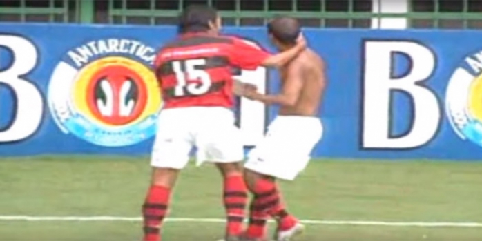 Após marcar pelo Flamengo no 6 a 2 sobre o Cruzeiro, em 2004, Felipe jogou a camisa para longe