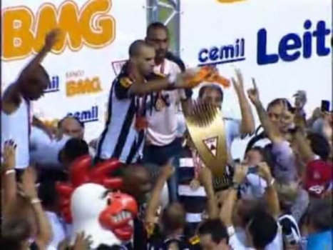 Diego Tardelli rebateu provocações de que o Atlético-MG era 'flanelinha', lustrando o troféu do Estadual de 2010