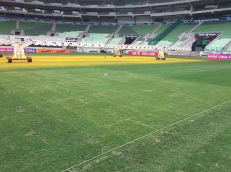 A WTorre espera entregar ao Palmeiras no domingo um gramado bem melhor do que o dos últimos jogos no Allianz Parque. Depois de ter problemas nas partidas contra Grêmio e Sport, a construtora considera que o campo da arena está em 75% do ideal antes do jogo contra o Inter.