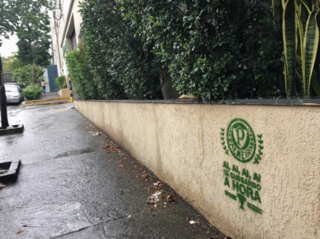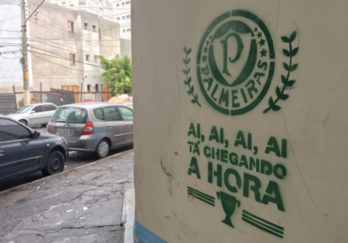 Vários pontos da cidade de São Paulo começaram a semana pintados com um aviso palmeirense: "Tá chegando a hora". A mensagem, que obviamente faz referência à proximidade do título brasileiro, vem acompanhada do símbolo do clube e do desenho de um troféu. Foi uma ideia do torcedor Gabriel Santoro para deixar a capital "mais verde".