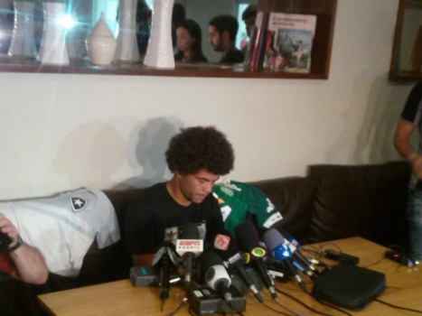 Camilo concedeu coletiva deixando lado a lado as camisas de Botafogo e Chapecoense