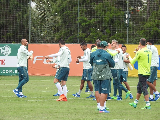 A brincadeira começou com uma perseguição. Alvo do elenco, o atacante fugiu para o estacionamento dos visitantes e conseguiu despistar os companheiros na primeira tentativa. No campo principal, minutos depois, o grupo se concentrou para um trabalho físico, acompanhado por Guedes de longe.