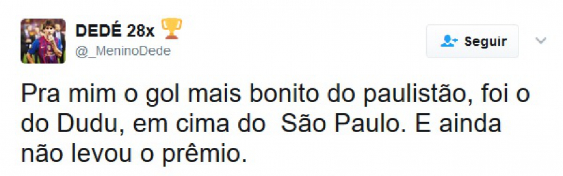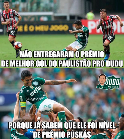 Realmente é um absurdo o Dudu não ter ganho esse prêmio, com certeza merecia, fez o gol mais bonito do campeonato sem sombra de dúvida.