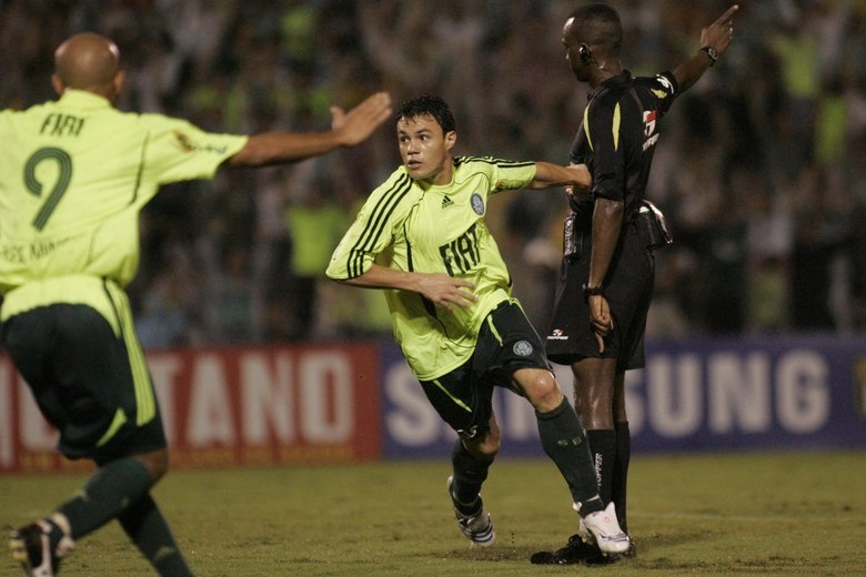 Outro modelo lembrado com carinho pelo torcedor palmeirense é o de 1999. Com um tom de verde mais escuro e com o símbolo do clube no centro da camisa, o Palmeiras conquistou seu primeiro título da Libertadores (Foto: Gazeta Press)