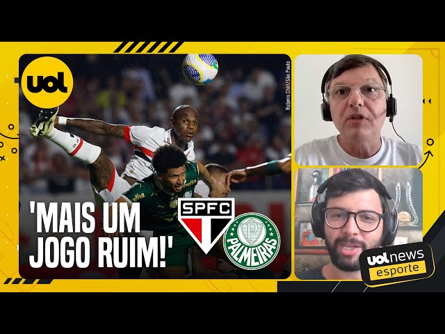 São Paulo e Palmeiras não saíram do zero no Choquei-Rei de ontem pelo Brasileirão. No UOL News Esporte , os colunistas Mauro Cezar Pereira e Danilo Lavieri divergiram sobre a qualidade do clássico. Se para Lavieri o jogo foi "aceitável", para Mauro, foi "péssimo". Mauro Cezar: 'O jogo foi péssimo. Jogos péssimos têm sido uma rotina' O jogo foi ruim, como têm sido vários jogos, Supercopa foi também, outro jogo péssimo. Ontem foi péssimo de novo, como Palmeiras 0 x 0 Flamengo foi péssimo. Aliás, jogos péssimos têm sido uma rotina. Muito se exalta a competitividade do Palmeiras, mas pouco se fala de jogos péssimos nos quais o bicampeão brasileiro está inserido. Cobramos muito pouco qualidade de jogo, vontade de ganhar, o lance mais emocionante do jogo foi um chute peteleco do Lázaro que foi tirado pelo Alisson, se chuta com vontade, com força, faz o cara, mas chutou fraquinho e o Alisson tirou. Foi o lance mais emocionante do jogo, é muito pouco. Estou falando do bicampeão brasileiro contra o campeão da Copa do Brasil. Domingo vimos o Fluminense, gostaram do Fluminense? É o campeão da Libertadores. E o Flamengo, que é o time mais caro das Américas, que perdeu para o Botafogo? São vários jogos ruins com muita tolerância da torcida e da mídia. Não, que é jogo brigado, pegada de Libertadores, o cacete! Jogo ruim, jogo ruim, jogo ruim, mais um jogo ruim. A gente está se acostumando a ver jogo ruim e não cobramos dos artistas do espetáculo, inclusive dos treinadores, que hoje também são artistas, um pouco mais de futebol, de desejo pela vitória. É muito pouco, esses caras têm que oferecer mais. Foi mais uma pelada, mais um jogo fraco entre os outros, com 55 mil pessoas no estádio. Será que elas não mereciam algo melhor do espetáculo? Danilo Lavieri: 'Faz parte da competitividade do Brasileirão' O primeiro tempo achei o jogo ruim, mas no segundo tempo melhorou, de fato é um jogo tenso, mas achei que houve algumas mudanças interessantes dos dois técnicos. O Palmeiras pressionou bastante o São Paulo nos primeiros 20 minutos do segundo tempo, a ponto de colocar o São Paulo jogar no contra-ataque dentro do MorumBis, com Murilo saindo mais, tendo praticamente virada um líbero, às vezes até um camisa 10. O Palmeiras conseguiu encurralar o São Paulo por 15 a 20 minutos e aí o São Paulo passou a jogar no contra-ataque, tanto que no Zubeldía colocou o Ferreirinha e a partir daí o São Paulo começa a levar mais perigo depois de um três dedos invocado do Michel Araújo, o São Paulo responde com uma bola na trave do Calleri. É verdade, não foi um jogo de grandes chances, onde os goleiros trabalharam bastante, mas achei um jogo tenso, um Palmeiras e São Paulo num nível aceitável. Classificação e jogos Brasileirão MorumBis com 55 mil pessoas, vários fatores externos, a questão da briga do Abel, a lesão do Pablo Maia um dia antes do jogo, então eu acho que dá para achar aceitável. O ideal seria um jogo mais bonito, assim como no Palmeiras 0 x 0 Flamengo, mas aí eu vejo uma questão também de decisão, de os caras não quererem perder ponto um para o outro. Isso é legal? Não, afeta o espetáculo, mas faz parte da competitividade do Brasileirão. Lives de clubes no YouTube do UOL Esporte Toda semana, sempre às 17h (de Brasília), o canal do UOL Esporte no YouTube tem lives 100% voltadas para você, torcedor de Corinthians , Flamengo, Palmeiras ou São Paulo. A cada dia, um clube diferente! Então, torcedor, fica esperto: Live do Flamengo - segunda-feira (às 17h de Brasília) Live do Palmeiras - terça-feira (às 17h de Brasília) Live do São Paulo - quinta-feira (17h de Brasília) Live do Corinthians - sexta-feira (17h de Brasília) Confira os horários das lives do UOL Esporte 09h - UOL News Esporte - Eduardo Tironi e o time de colunistas do UOL comentam as principais notícias do dia. 11h - De Primeira - Domitila Becker, PVC e André Hernan revelam os bastidores do mundo da bola.