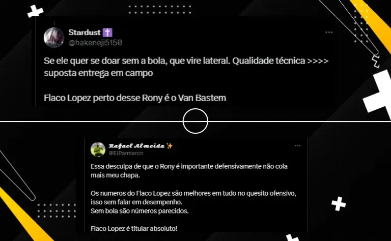 O comandante português ainda fez questão de elogiar López. Ele destacou que mesmo sendo muito jovem e tendo um começo difícil na equipe paulista, ele está dando a volta por cima e vem sendo muito importante para o Palestra.