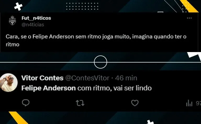 Ainda buscando seu primeiro gol com a camisa do Palmeiras, o camisa 9 chegou perto de marcar, mas acabou desperdiçando a oportunidade. Mesmo assim, Felipe Anderson foi bastante elogiado pelos palmeirenses.