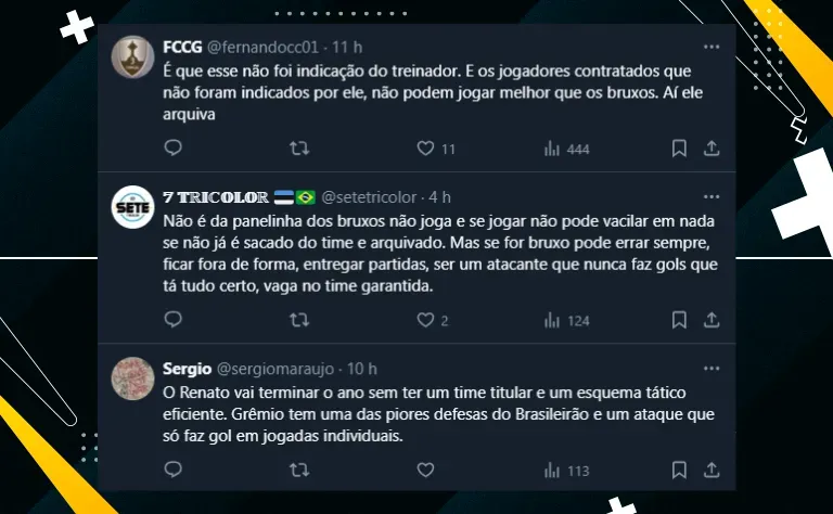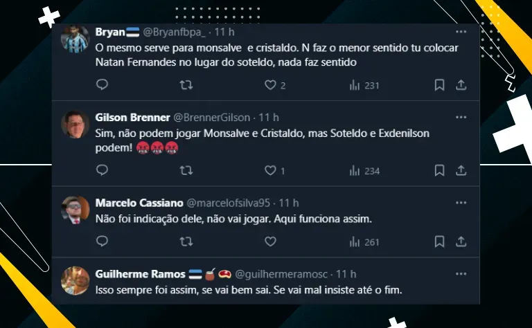 Grêmio perde por 1 a 0 no Allianz Parque Com apenas 39 pontos ganhos em 33 jogos disputados, o Grêmio vem realizando uma campanha muito aquém daquilo que o torcedor imaginava no início da temporada. © Liamara Polli/AGIF Arezo sequer saiu do banco de reservas diante do Palestra. Foto: Liamara Polli/AGIF Árbitro expõe verdade sobre não expulsão de Monsalve, do Grêmio Abel Ferreira analisa Palmeiras x Grêmio pelo Brasileirão Neste sábado (8), podendo se livrar de vez do rebaixamento em caso de vitória, o Tricolor dos Pampas visitou o Palmeiras e acabou perdendo por 1 a 0, graças ao gol solitário marcado por Estêvão. Com o resultado, o Palmeiras diminuiu a vantagem do Botafogo para três pontos na luta pelo título. Enquanto isso, o Grêmio pode deixar a diferença para o Z-4 cair para apenas dois pontos, dependendo da rodada. Além das fortes críticas ao desempenho do time de Renato Portaluppi, a torcida também se mostrou insatisfeita com as escolhas do treinador, principalmente com o “sumiço” de Arezo e com a baixa minutagem de Cristaldo . Mais sobre Arezo e Cristaldo Falando um pouco mais sobre o centroavante uruguaio, vale frisar que, embora venha sendo pouco aproveitado, sofreu o pênalti diante do Fluminense e a torcida esperava que ele fosse acionado ontem (8). PUBLICIDADE PUBLICIDADE Abel comemorando a vitória. Foto: Marcello Zambrana/AGIF PUBLICIDADE PUBLICIDADE No entanto, ele sequer saiu do banco de reservas, o que causou um enorme descontentamento entre parte dos gremistas. Além dele, outro tema quente é o “escanteamento” de Cristaldo. O argentino é o principal artilheiro do Tricolor no ano, mas vem sendo reserva de Portaluppi, que tem optado por Edenílson . Vale a pena conferir a reação de alguns torcedores acerca do tema. Veja também Marcelo de Lima Henrique expõe verdade sobre não expulsão de Monsalve em Palmeiras X Grêmio: “Rasteira” Gremistas detonam atitude de Renato PUBLICIDADE PUBLICIDADE