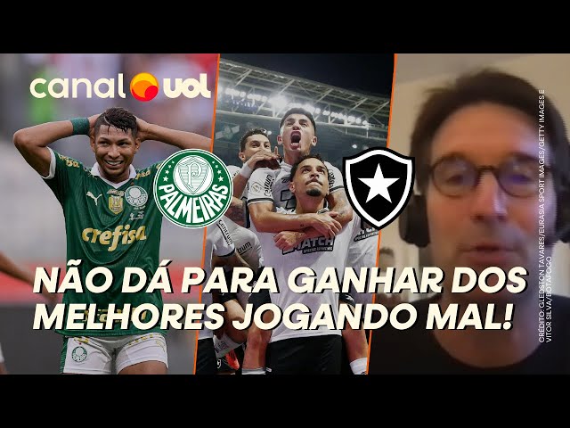 O Palmeiras jogou mal durante todo o Campeonato Brasileiro, avaliou Arnaldo Ribeiro no UOL News nesta quarta (27). O comentarista argumentou que a regularidade em jogos contra adversários mais frágeis deixa o clube alviverde na briga pelo título até a reta final. [Tem] algumas limitações o Palmeiras, não emocionais, mas táticas e técnicas. Isso ficou evidente no campeonato todo -- inclusive nas vitórias sobre o Bahia e o Atlético-GO. O Palmeiras não jogou bem. [...] Jogar mal contra o Botafogo ou contra os times do G-6 não é possível. Você não consegue ganhar dos melhores ou iguais jogando mal.