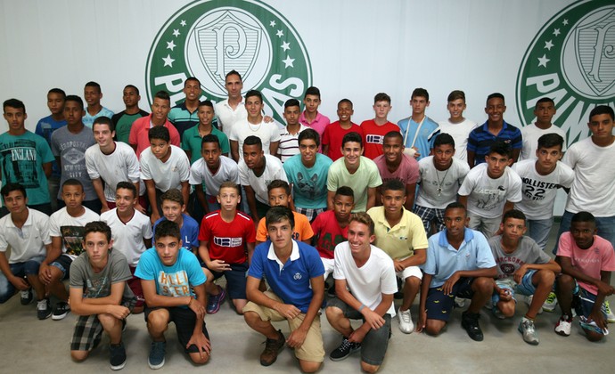 Fernando Prass e os garotos das categorias de base do Verdão após palestra (Foto: Cesar Greco/Ag.Palmeiras)