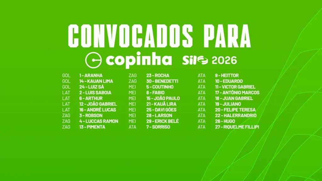 Na tarde desta sexta-feira, o Palmeiras anunciou a lista dos 30 jogadores inscritos para a edição de 2026 da Copa São Paulo de Futebol Júnior. Entre os atletas selecionados, destacam-se remanescentes da competição anterior, em 2025, além de jovens talentos que já possuem experiência no time profissional. A estreia da equipe, conhecida como as Crias da Academia, está marcada para a próxima segunda-feira, onde enfrentarão o Monte Roraima-RR às 19h30 (horário de Brasília) na Arena Crefisa Barueri. O Palmeiras busca conquistar o tricampeonato, tendo vencido o torneio nos anos de 2022 e 2023.