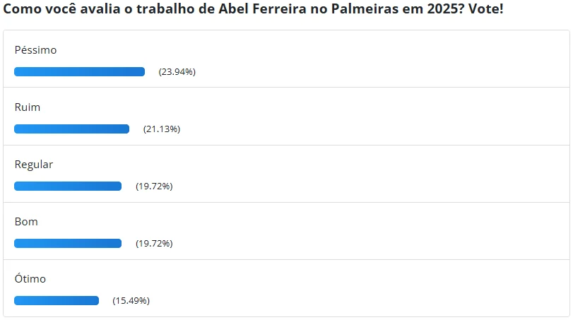 Uma enquete realizada pela Gazeta Esportiva refletiu esse descontentamento, mostrando que 23,94% dos votantes consideraram o ano como "péssimo", enquanto 21,13% o avaliaram como "ruim". Apenas 15,45% viram a temporada de 2025 como "ótima". As alternativas "ruim" e "regular" empataram, cada uma recebendo 19,72% dos votos.